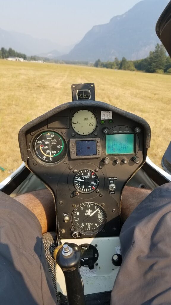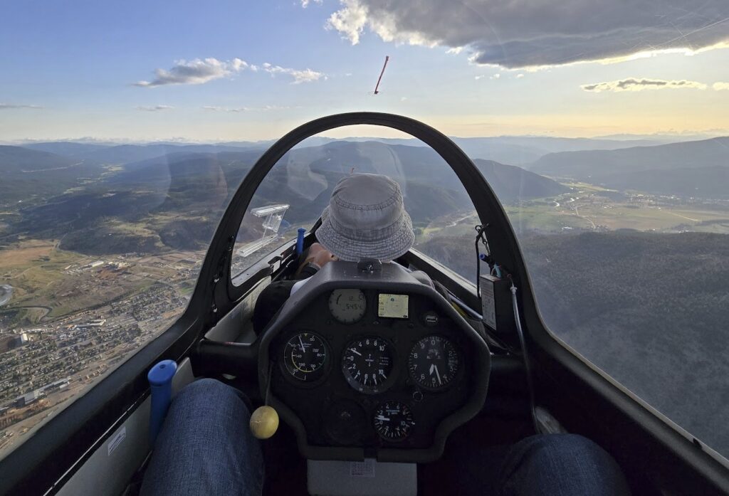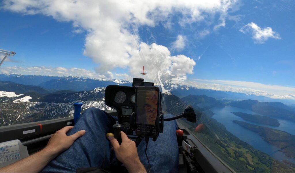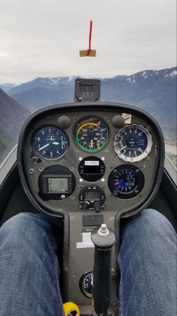 Gliders can climb as high as the atmospheric conditions allow, but around Hope we are generally limited by Class B airspace to 12,500’ ASL. It takes special conditions to reach these altitudes, which only happen several days each year. Climbs up to 8,000’ ASL are typical on good soaring days.