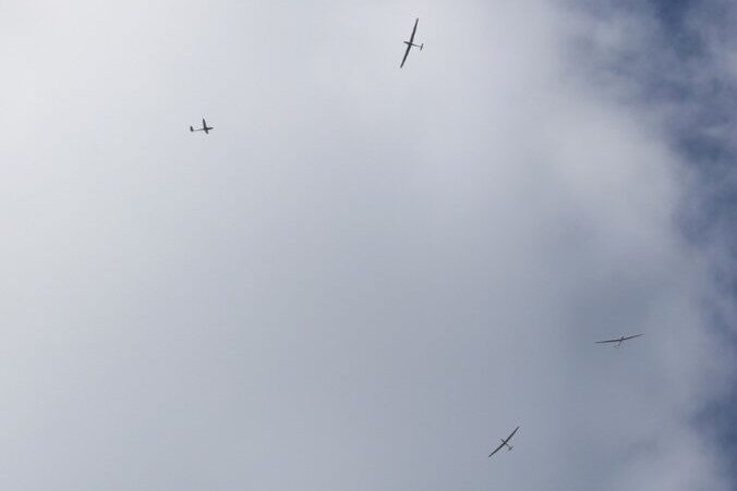 Our club and members own & operate nearly 20 gliders. Also known as “sailplanes”, these aircraft have wingspans of 15 – 20 metres (49 – 66 ft), glide ratios between 30:1 and 45:1 at speeds of 45 – 65 kts, and may cruise at speeds in excess of 90 kts. Their slim profiles and predominantly white paint schemes can make gliders difficult to see in the air.